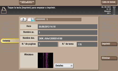 Puede tocar [Detalles] o una imagen en miniatura para obtener una vista previa de la imagen del archivo.