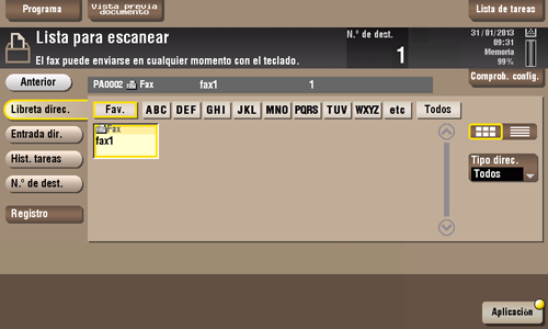 Desde la Libreta de direcciones, seleccione un destino registrado en la máquina. Es posible retransmitir archivos seleccionando varios destinos.