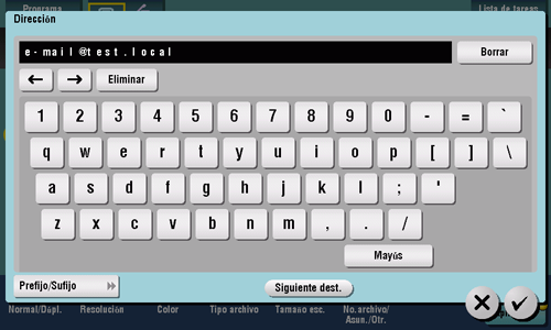 Introduzca una dirección de correo electrónico de destino cuando se envíen datos de originales escaneados como datos adjuntos al e-mail.