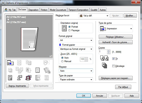 Le pilote d'imprimante est doté d'une fonction qui permet d'enregistrer les réglages favoris. Il est utile d'enregistrer comme favoris les réglages d'impression fréquemment utilisés. Pour des détails, voir ici.