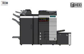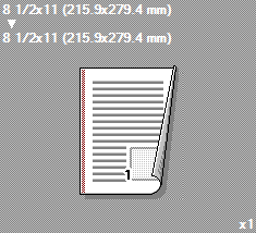 Sélectionner [Aperçu Page] affiche la mise en page modèle en fonction des réglages actuels afin de pouvoir contrôler l'image de la page. Sélectionner [Aperçu Imprimante] affiche une image de l'imprimante montrant les options , les magasins par exemple, installées sur la machine. Aperçu Page : Aperçu Imprimante : |