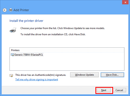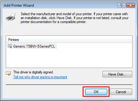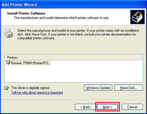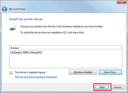 La boîte de dialogue [Installer le pilote d'imprimante] apparaît.