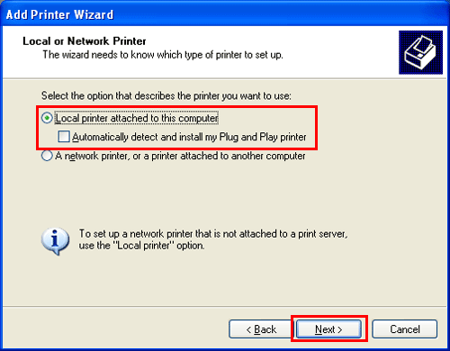 Décochez la case [Détection automatique et installation de l'imprimante Plug and play].