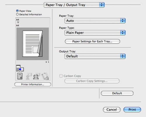 Dans [Paper Tray / Output Tray], vous pouvez spécifier les magasins et les types de papier à utiliser pour l'impression.