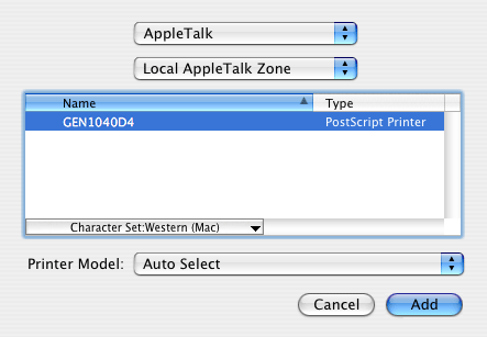 Sous Mac OS X 10.2/10.3, utilisez la procédure suivante pour ajouter une imprimante avec une connexion AppleTalk :