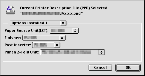 Spécifiez les options installées sur cette machine, et cliquez sur [OK].