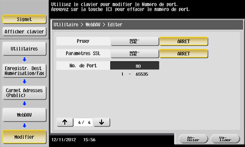 Vous pouvez également enregistrer une destination WebDAV en utilisant Web Connection. Pour des détails, voir ici.