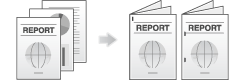 Les pages de l'original sont disposées en double pages et imprimées sur les deux côtés des feuilles. Vous pouvez également spécifier la position de reliure ou insérer une face et un dos de couverture.