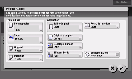 Si vous le souhaitez, tapez sur [Modifier Réglage] pour changer les réglages de copie en fonction du nouvel original.