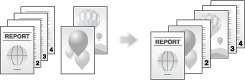 Si le nombre de pages à insérer dans l'original est plus important que le nombre réglé, les pages supplémentaires sont imprimées après la dernière page de l'original.