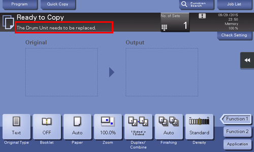 Es müssen Einstellungen vom Servicetechniker vorgenommen werden, um die Meldung im Hinblick auf die Trommeleinheit anzuzeigen. Weitere Informationen erhalten Sie von Ihrem Kundendienst.