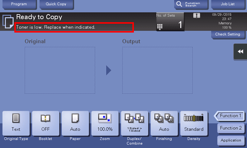 Die Benutzer können auch [Bedienerprogramm] - [Einheiten überprüfen] wählen, um den aktuellen Status der Verbrauchsartikel (Füllstand) am Bildschirm anzuzeigen und zu überprüfen.