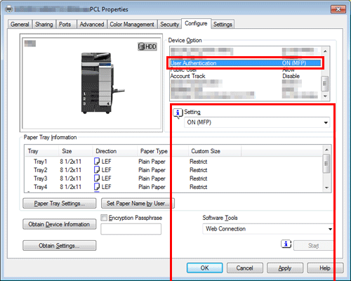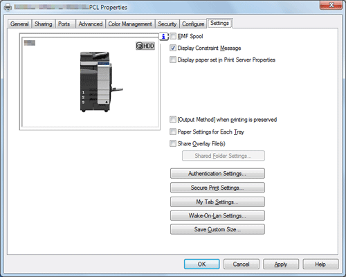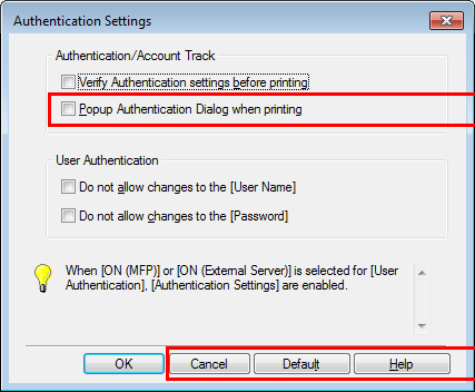 A. Richten Sie im Eigenschaftenfenster des Druckers die Einstellung ein, mit der das Dialogfenster für die Authentifizierungseinstellung eingeblendet wird, wenn Daten gedruckt werden sollen.