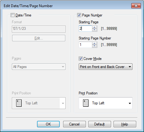 F. Ich möchte auf dem vorderen Deckblatt keine Seitenzahl drucken, wenn Seitenzahlen hinzugefügt werden. Wie kann ich die Einstellung einrichten, mit der die zweite Seite auf dieselbe Weise wie die erste Seite gedruckt wird?