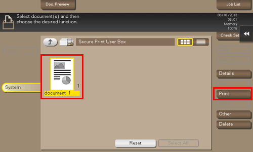 Nach der erfolgreichen Benutzerauthentifizierung wird die Datei gedruckt.