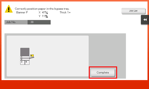 Vergewissern Sie sich, dass der Bildschirm angezeigt wird, der auf den anstehenden Bannerdruck hinweist.