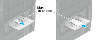 Legen Sie Umschläge bzw. Postkarten mit der Druckseite nach unten in die Stapelanlage/den Spezialeinzug.
