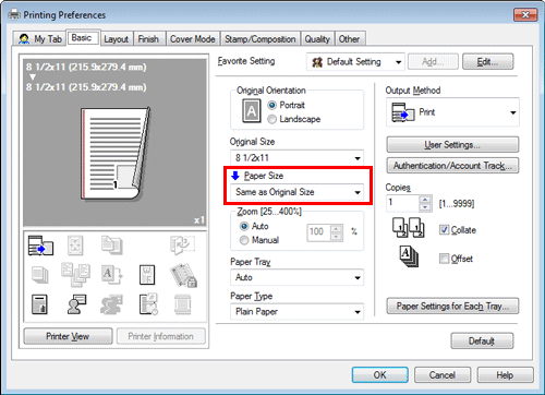 Stellen Sie sicher, dass [Papierformat] auf [Wie Originalformat] gesetzt ist.