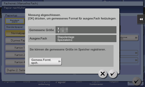 Wenn das erkannte Format als Papierformat festgelegt werden soll, tippen Sie auf [OK].