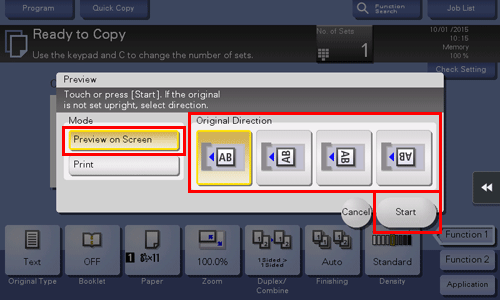 Legen Sie das Original mit dem zu registrierenden Overlay-Bild ein, ändern Sie ggf. die Bildeinstellungen und tippen Sie dann auf [Start].