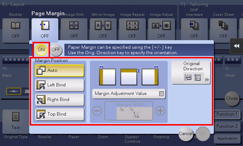 Tippen Sie auf [EIN] und konfigurieren Sie die entsprechenden Optionen für Seitenränder.