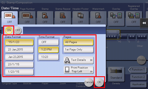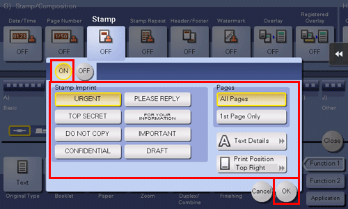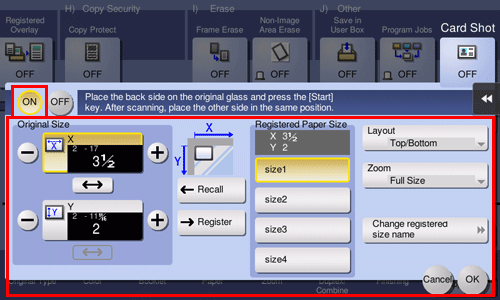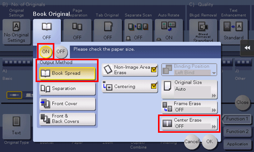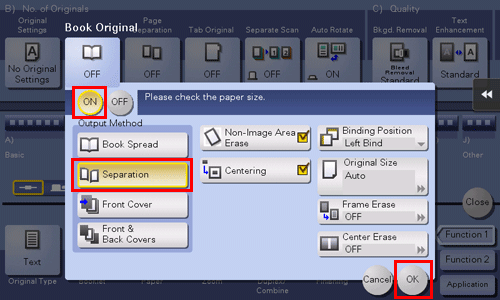 Konfigurieren Sie die entsprechenden Einstellungen für die vorderen und hinteren Deckblätter und tippen Sie dann auf [OK].