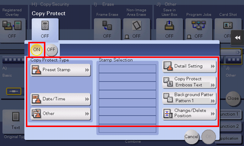 Die Einstellungen der Kopierfunktion werden in die im Programm registrierten Einstellungen geändert.