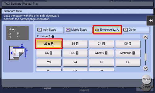 Wählen Sie das Umschlagformat unter [Umschlag/4 6] ([Umschlag/A6 Karte]) aus.