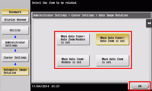 Wählen Sie [Kopierereinstellungen] - [Automatische Bilddrehung] aus.