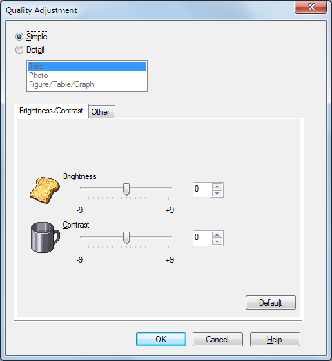 Puede ajustar la calidad de imagen general del original y también puede ajustar en detalle la calidad de imagen de cada uno de los elementos del original, ya sea texto o fotos. Cuando esté utilizando el controlador PCL, puede ajustar el brillo y el contraste.