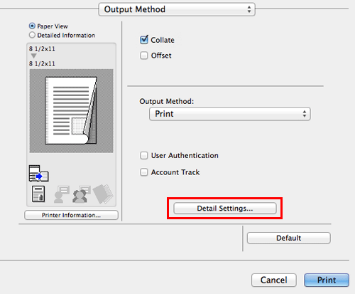 Dans la fenêtre [Output Method], cliquez sur [Detail Settings...]