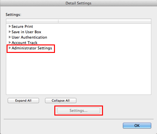 Sélectionnez [Administrator Settings], puis cliquez sur [Settings...]
