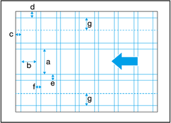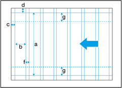 [Front Edge] | The front edge is automatically calculated from the paper size (lengthwise,), finishing size ([Height]), [Rear Edge], and [Cut Width] ([Lengthwise]). [Front Edge] = Paper size (lengthwise) - Finishing size ([Height]) - [Rear Edge] - [Cut Width] ([Lengthwise]) |