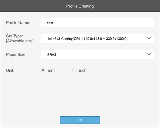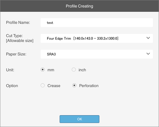 For details about how to create and register profiles, refer to [Create] or Creating and Editing Trimmer Profiles.