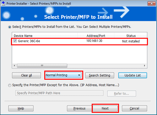 Wählen Sie [Drucker/MFPs installieren] aus und klicken Sie auf [Weiter].