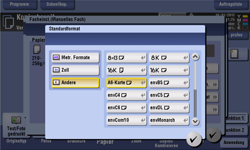 6 (A6 Karte) prüfen Sie das Format und wählen Sie [Papierformat] - [Bdf. Format] aus, um das Format anzugeben.