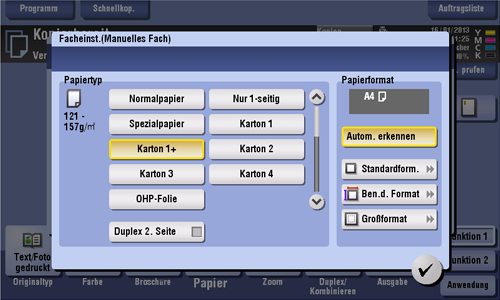 ] - [Facheinstellung ändern] - [Papiertyp] - [Karton 1+] aus.