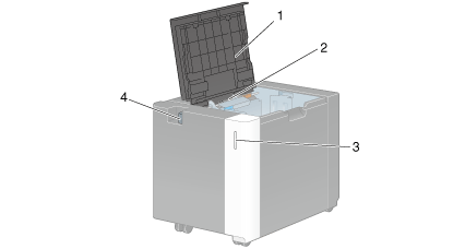 4 | Lösehebel | Drücken Sie auf diesen Hebel, um das Großraummagazin von der Haupteinheit zu lösen. |