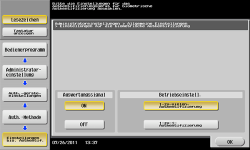 Tippen Sie auf [OK], um das Festlegen der Authentifizierungseinstellungen dieses Systems zu beenden.