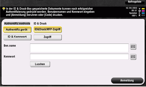Die Anmeldemethoden variieren je nach Authentifizierungseinstellungen dieses Systems.