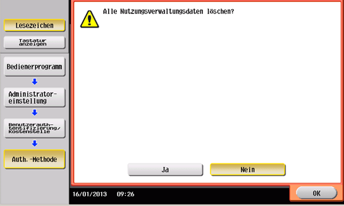 Tippen Sie auf [OK], um das Festlegen der Authentifizierungseinstellungen dieses Systems zu beenden.