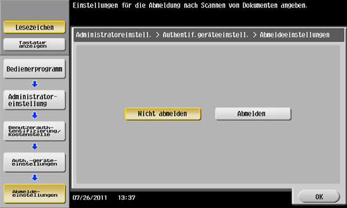 Wählen Sie aus, ob nach Abschluss des Originalscannens eine automatische Abmeldung