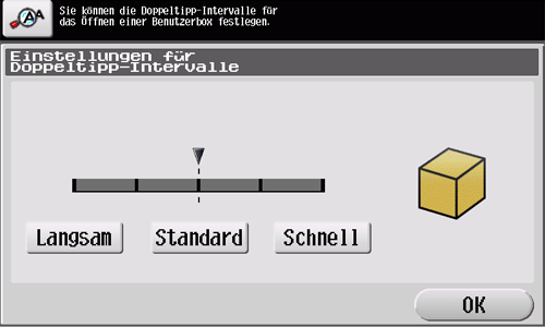 Das Doppeltipp-Intervall kann in fünf Stufen geändert werden. Tippen Sie doppelt auf das Feld rechts im Bildschirm, um die aktuelle Einstellung zu prüfen.