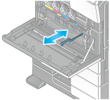 Wenn der elektrostatische Ladedraht verschmutzt ist, können in der Druckausgabe Streifen erscheinen. Reinigen Sie in diesem Fall den elektrostatischen Ladedraht wie nachfolgend beschrieben.