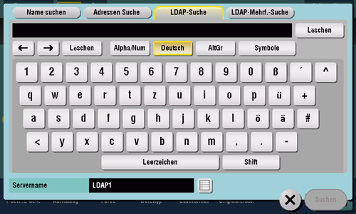 StartseiteBeschreibung der Funktionen / BedienerprogrammtastenLDAP-Suche