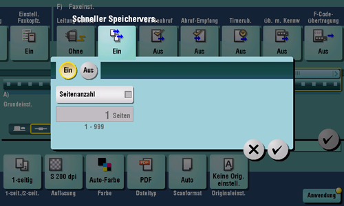 [Ein]/[Aus] | Wählen Sie [Ein], um den schnellen Speicherversand zu aktivieren. |