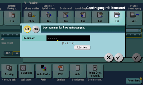 [Ein]/[Aus] | Wählen Sie [Ein], um die Übertragung mit Kennwort zu aktivieren. |