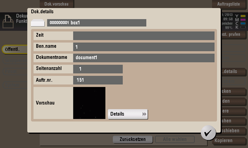 Sie können den Speicherzeitpunkt, die Seitenzahl und ein Vorschaubild der ausgewählten Datei abrufen.