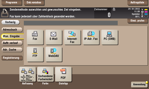 [Internet-Fax] | Geben Sie die Ziel-E-Mail-Adresse ein, an die ein Internet-Fax gesendet werden soll. |