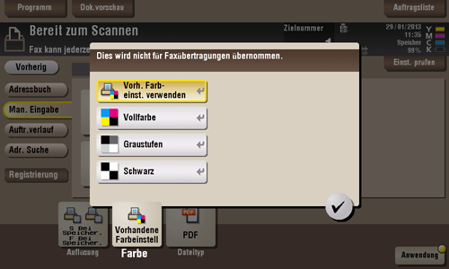 Sendet eine Datei in dem bei der Speicherung verwendeten Farbmodus.